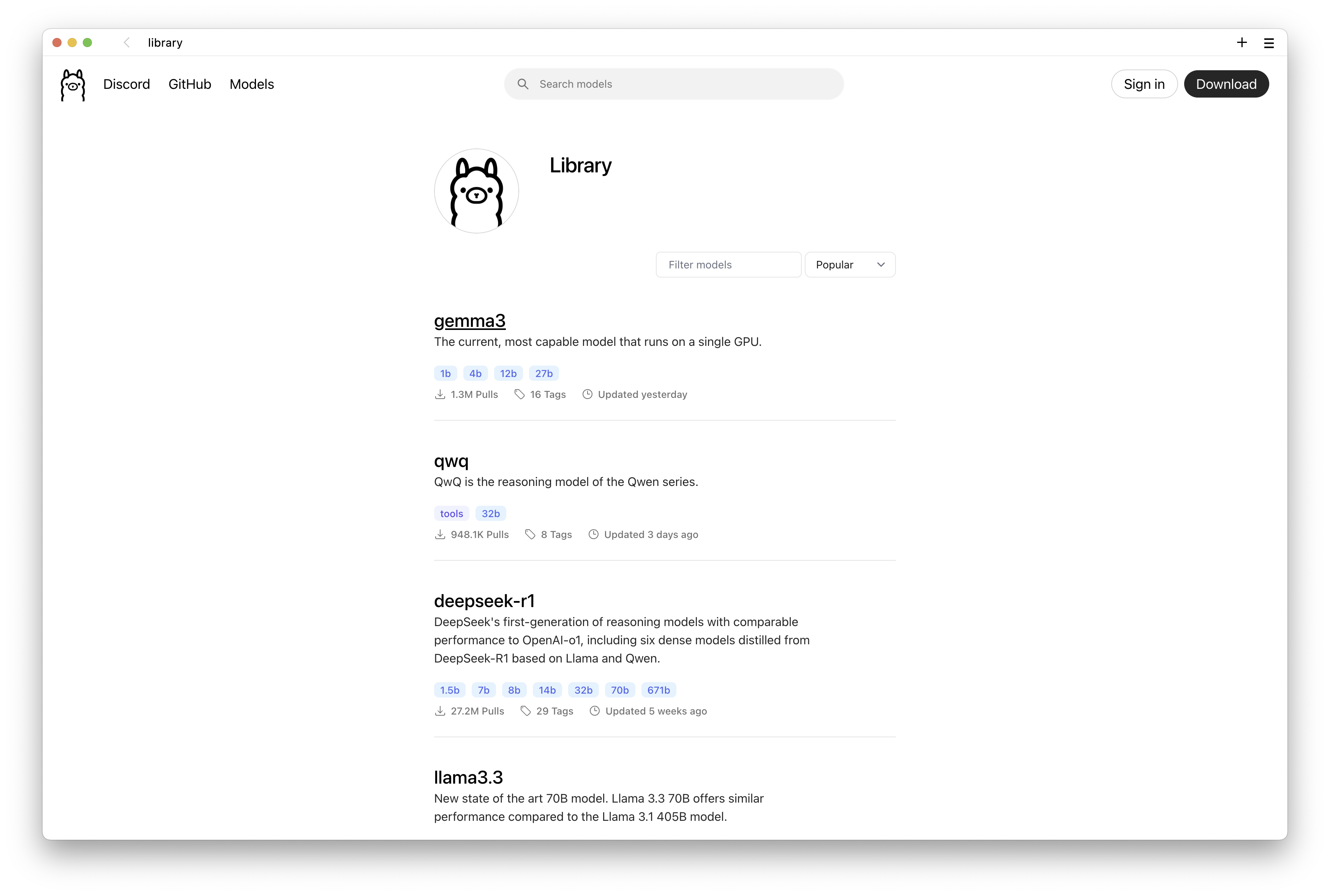 - You can download and use other models. See the full list compatible with the ollama LLM engine here.